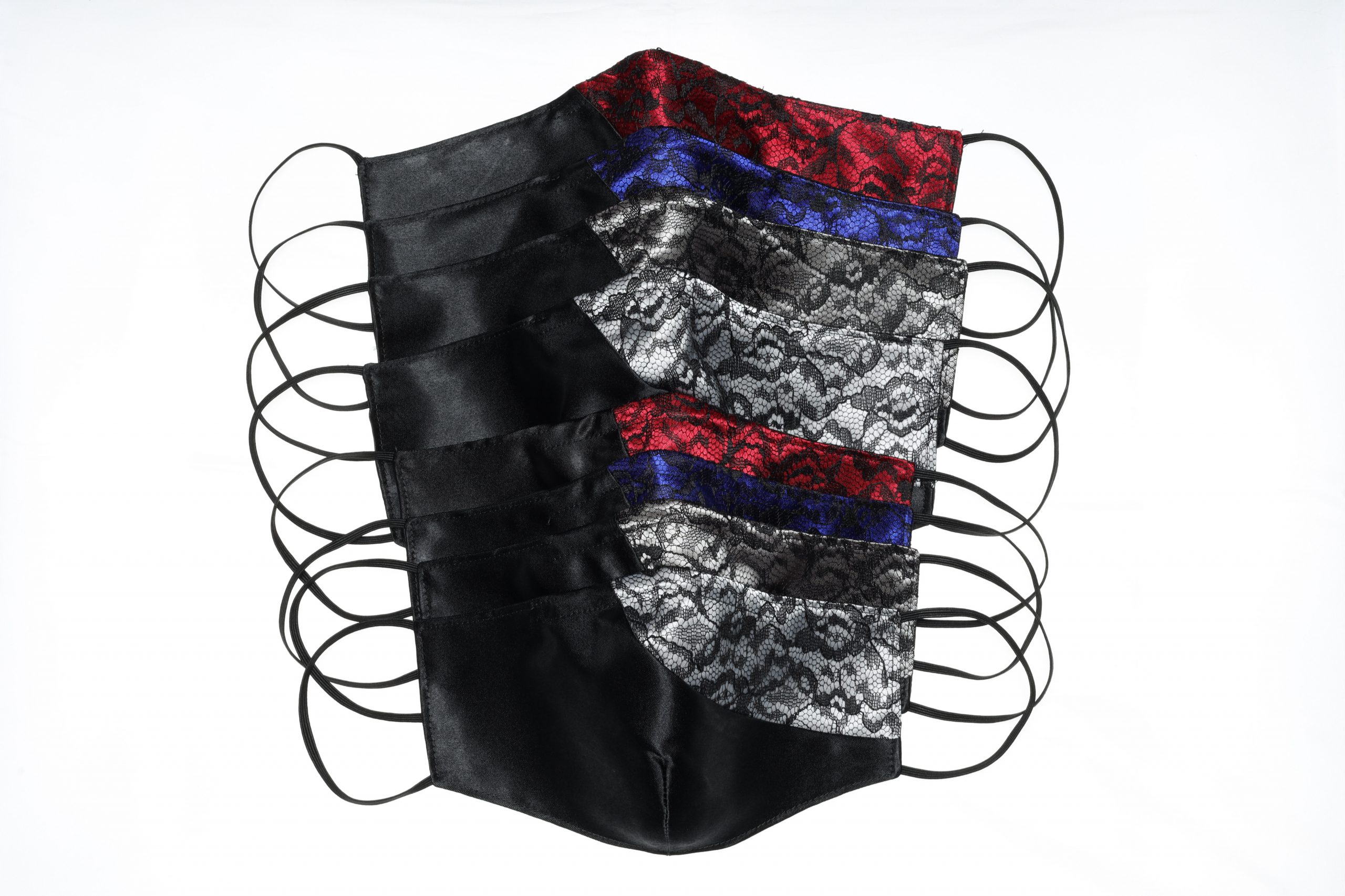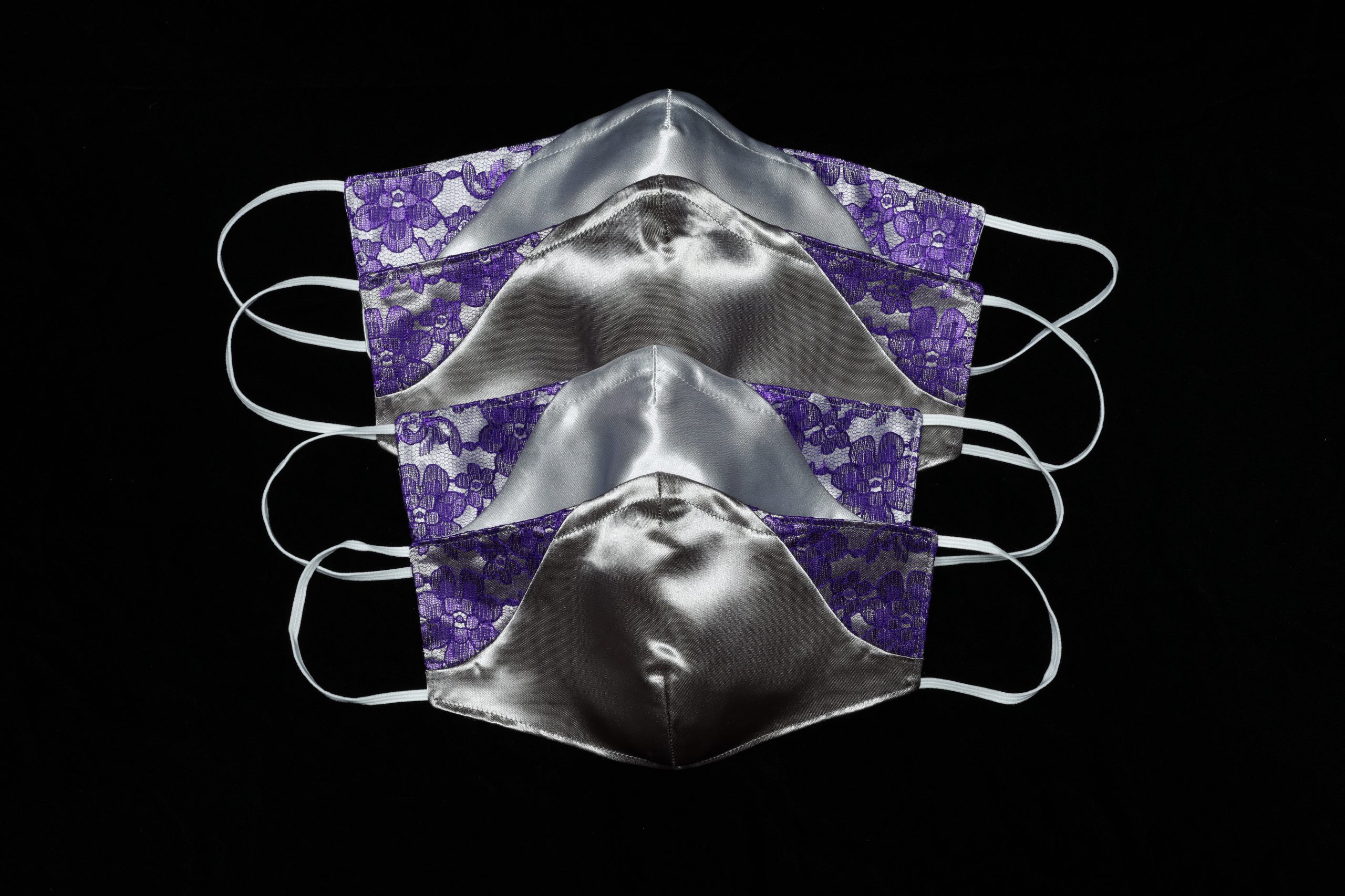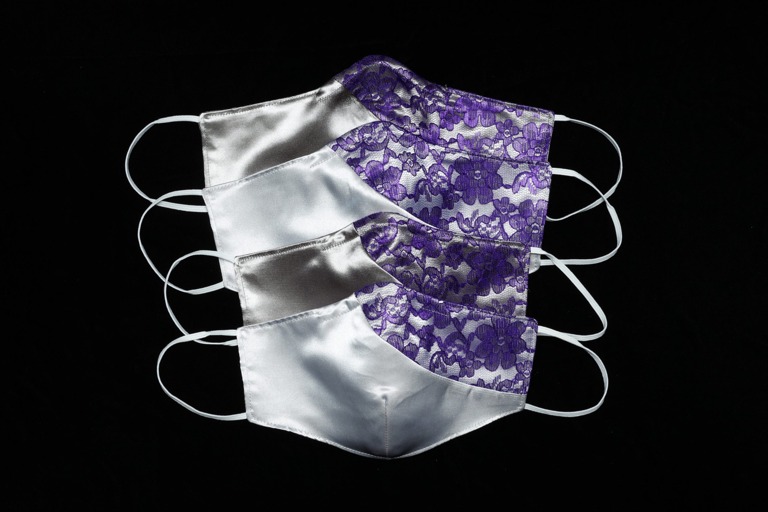 The swooping design I made several satin masks with a lace overlay.