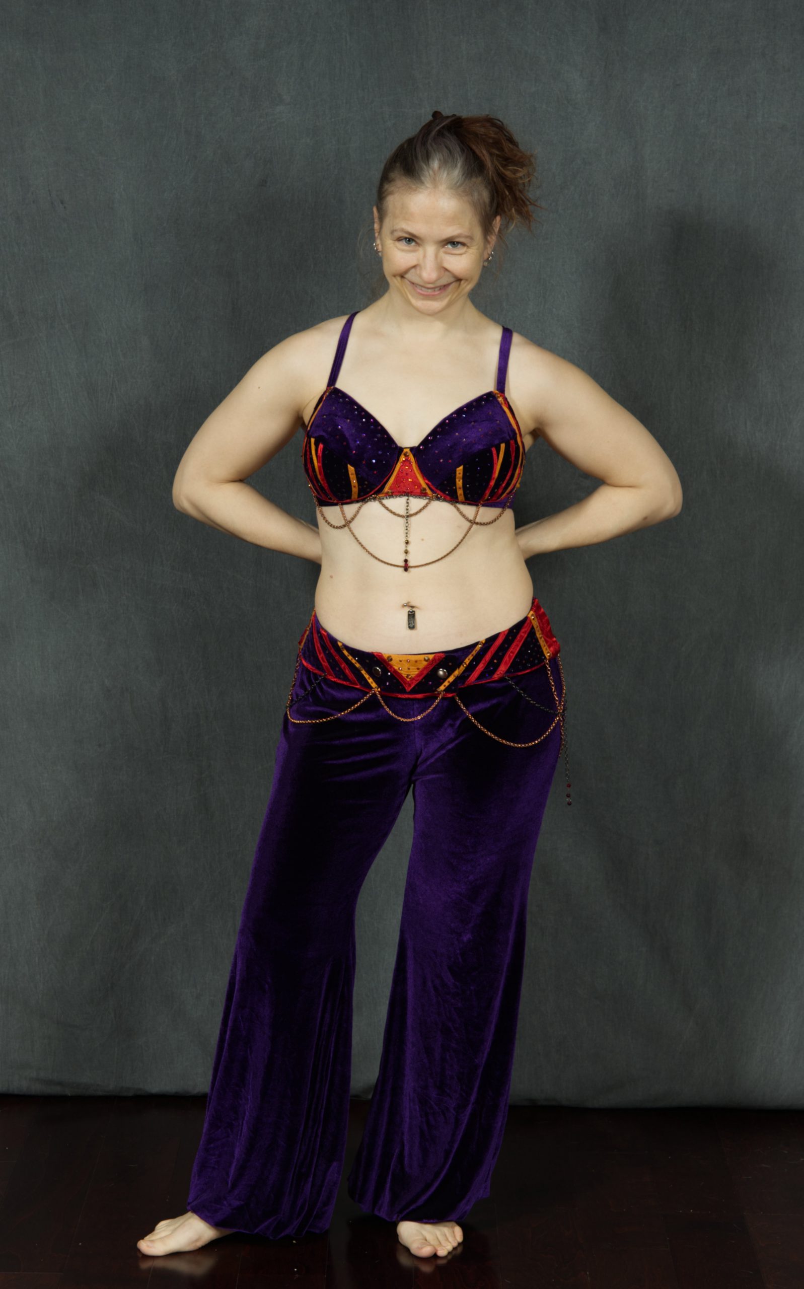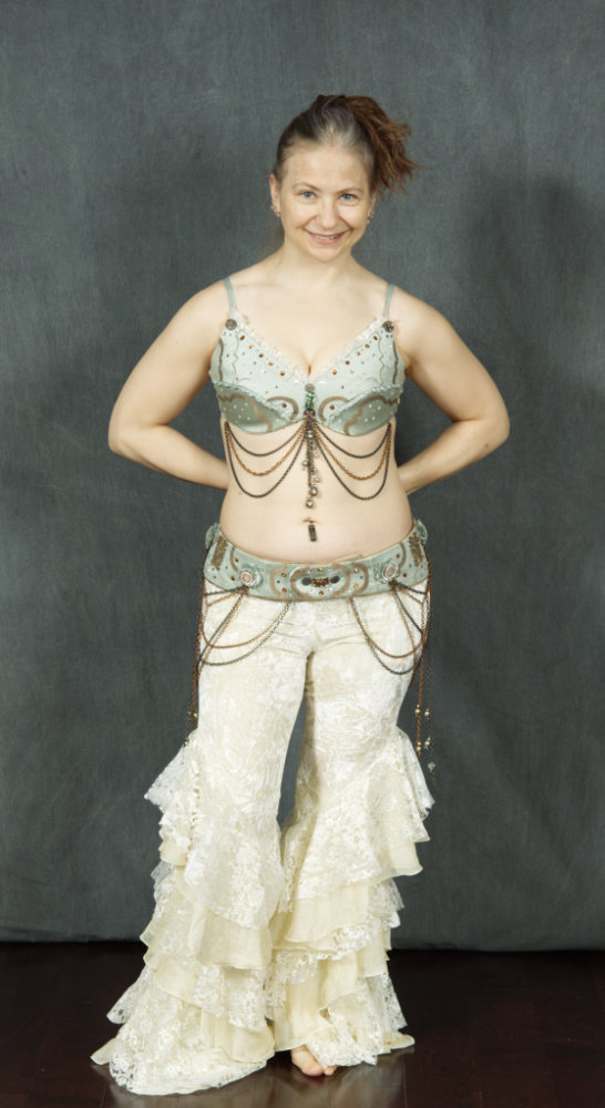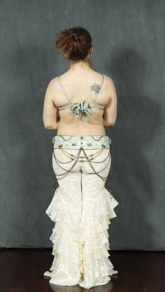 These are my top three belts that I've made for myself. Two of them have covered bras that match, and one has a matching bra I made from scratch. Check back as I add to my dance costume portfolio on this site.