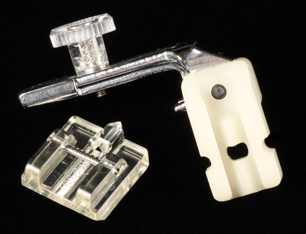 - Stitch in the ditch foot - The stitch-in-the-ditch foot helps you guide your garment under the foot in such a way that sewing a "stitch in the ditch" is way easier. I have one, and don't use it much yet. But when I need to do this technique, it is nice to have. It's so not critical.